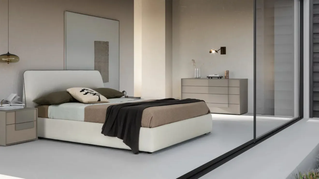 The bedroom is the space in the house that best reflects the taste of those who frequent it, the interior par excellence dedicated to rest, relaxation, and privacy. If you want to ensure total comfort in your moments of relaxation, choose modern double beds in fabric like the model shown in the photo. Discover a rich catalog of storage beds from the best furniture brands available in our showroom and optimize your bedroom. On our website, you will find the most valid solutions from the best brands specializing in bedroom furniture, with a wide range of customization options in terms of colors and combinations, accessories, and much more. The Adok Chloe upholstered double bed is one of the most exclusive solutions from the brand, a specialist in rest, capable of ensuring practicality, comfort, and a unique style.