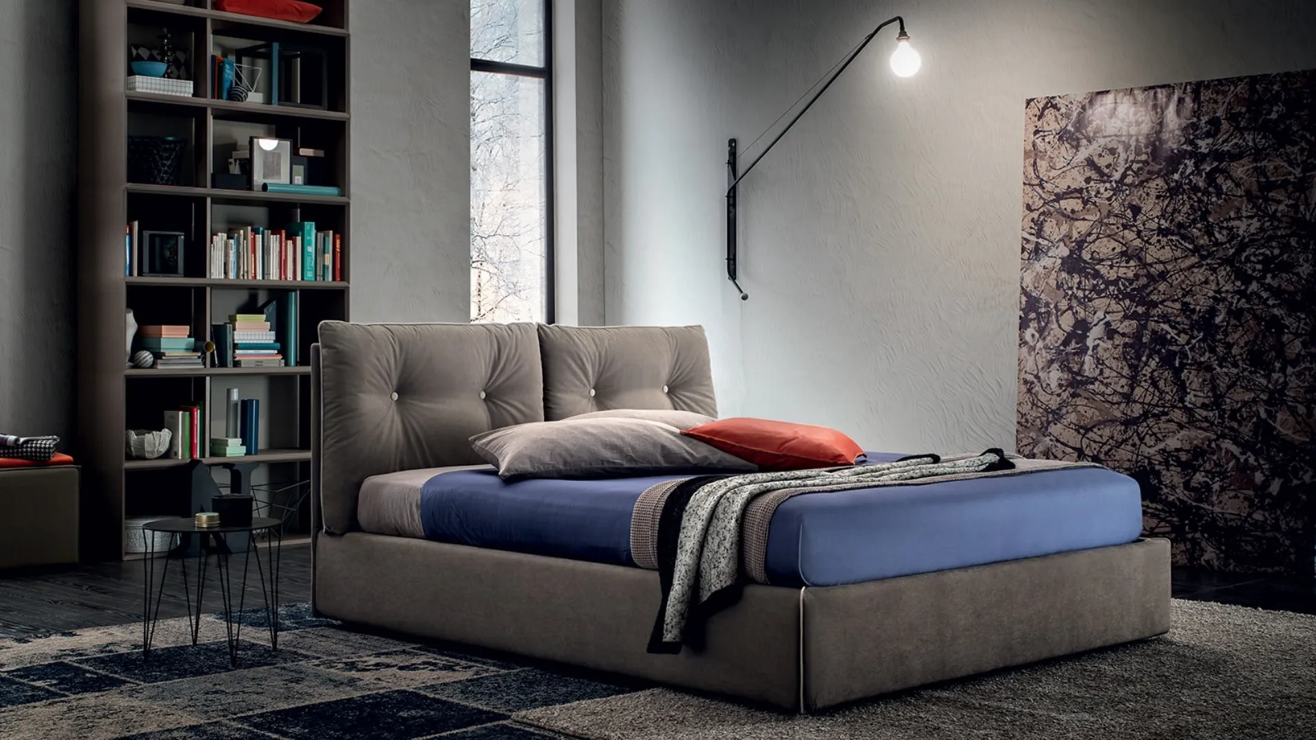 Contact us and discover more about our collection of upholstered double beds: enhance your bedroom with our compositions. The Scotty upholstered bed by Felis is one of the most original products of the company, synonymous with durability, quality finishes, and a unique style. This is a product of great charm, representing all the excellence guaranteed by the brand's years of professionalism in the field. To best complete the furnishing of your rest area, it is essential to consider the combinations of the bed with wardrobes and dressers, accessories, and anything else: if you want modern furniture, the model in the photo is perfect for you.