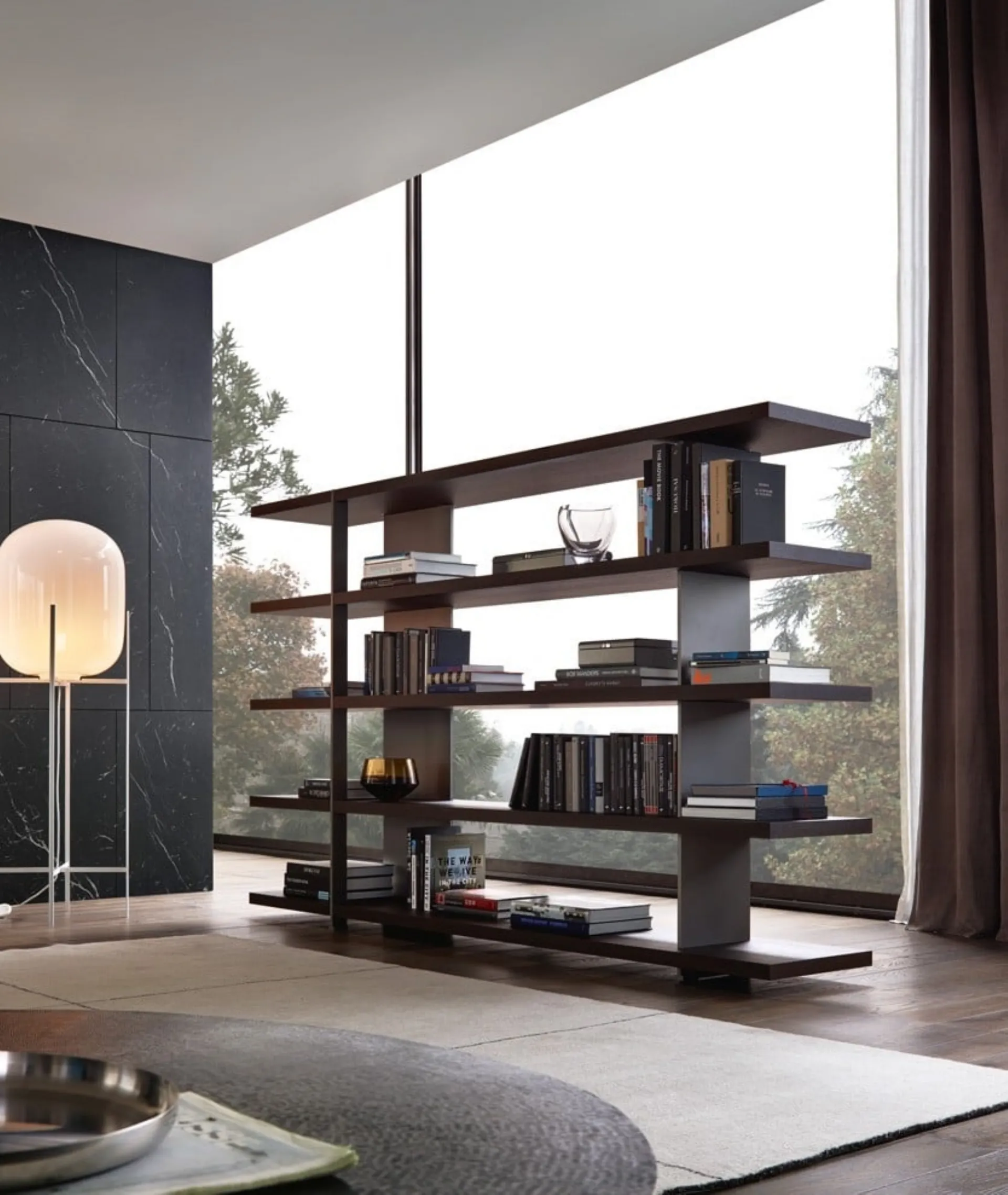 With the wooden bookcase shown here, you can recreate a unique atmosphere, characterized by the bold shapes of this model. Thanks to the Bristol dividing bookcase by Poliform, you can change the look of your home, optimizing every space with excellent aesthetic results. You will find different models of modern dividing bookcases for the living room, like the wooden model in the photo. The Bristol dividing bookcase by Poliform is ideal for giving character to your spaces: the various proposals from the brand will allow you to organize a dynamic and functional living space. Discover in our store our collection of dividing bookcases from the best Furniture Home manufacturers.