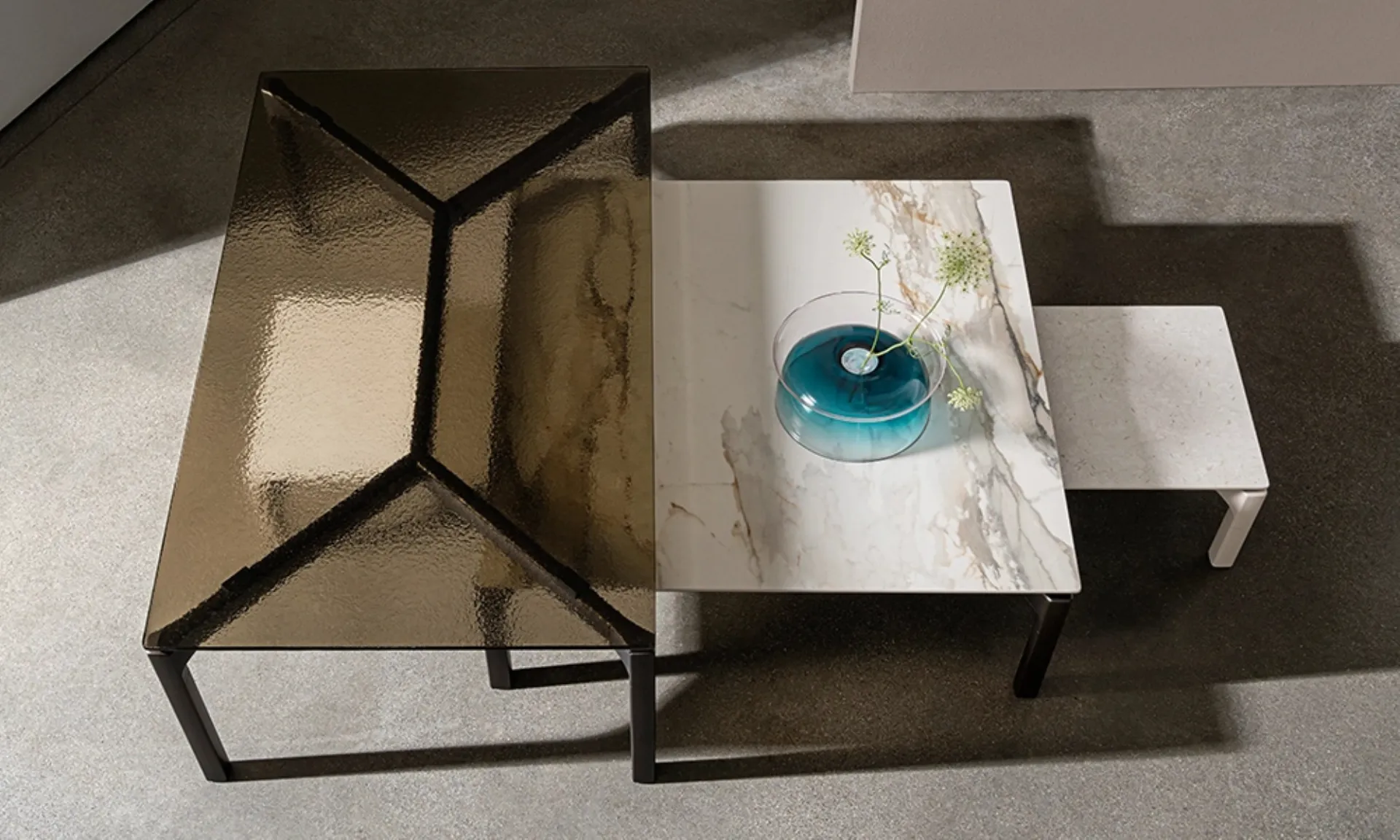 | Materiale: | Vetro (extralight, fumé, bronzato, laccato), Vetro acidato, Dekton (Aeris, Rem, Laurent, Nebbia, Morpheus, Somnia, Umber, Sirius), Liquid Glass (bronzo, fumé, champagne), Net Glass (laccato), Ceramica (Arabescato light, Stone grey lucido, Calacatta lucido, Gaudi Stone, Ombra di Caravaggio, Onice grigio, Onice oro, Marquinia lucido, Antique, Verde Aver, Black Gold), Alluminio laccato |