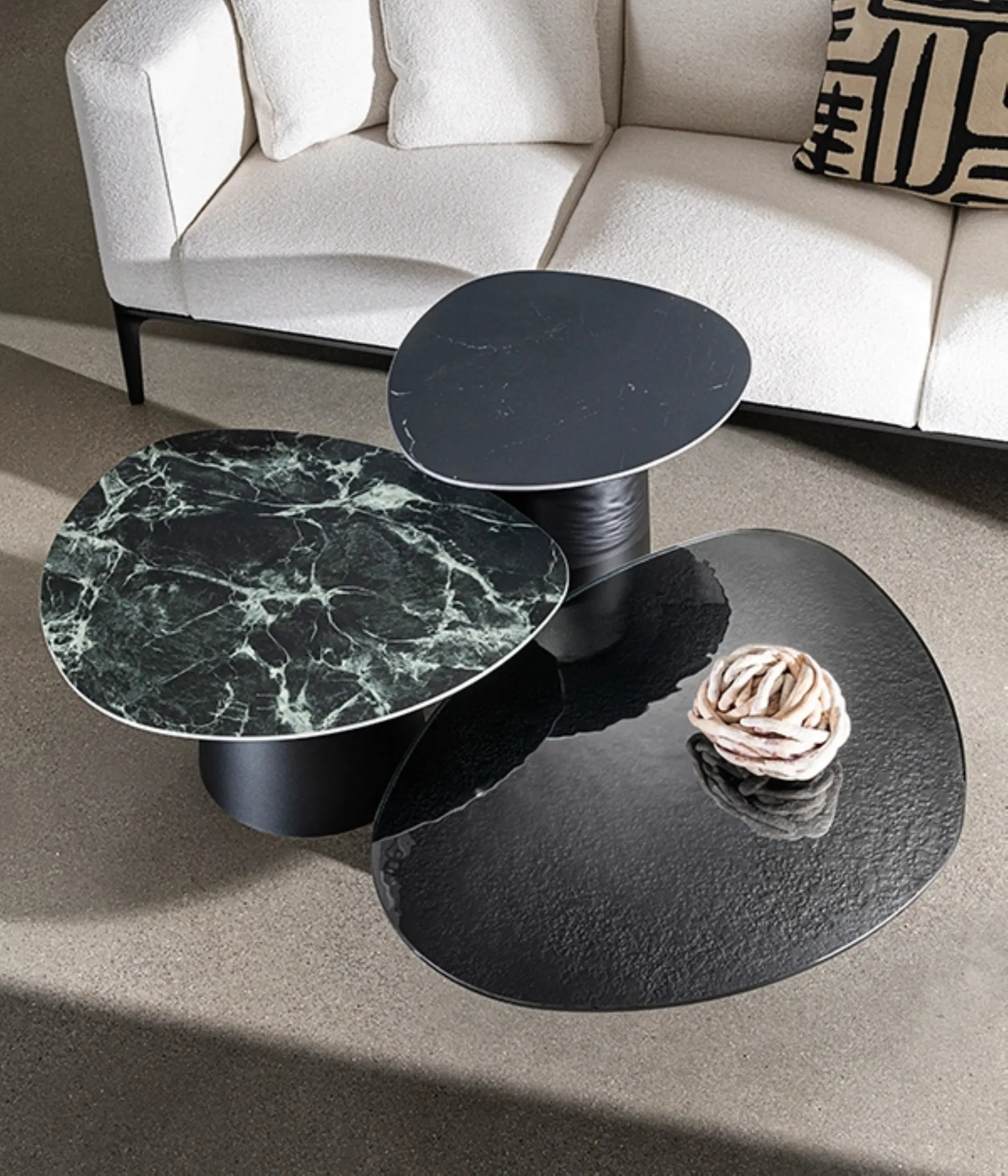 Il tavolino Totem Drop, frutto della creatività di Studio Sovet, si configura come un componente d'arredo dal forte impatto scultoreo, capace di infondere un senso di fluidità e distintività negli spazi abitativi moderni. La sua peculiare superficie superiore a goccia conferisce una dinamica visiva organica, ottimamente controbilanciata da una base metallica di alta ingegneria che assicura robustezza strutturale e un marcato contrasto estetico. La versatilità è garantita dalla disponibilità di finiture in vetro, legno, ceramica e l'innovativo vetro Materia, che arricchiscono il prodotto di spessore tattile e una sofisticazione materica intrinseca. Il design caratterizzato da linee sinuose e continue lo rende una soluzione privilegiata per contesti architettonici contemporanei, minimalisti o votati all'espressione creativa. La progettazione di questo elemento d'arredo è orientata a garantire una performance estetica e funzionale prolungata nel tempo, ottimizzando l'esperienza d'uso.