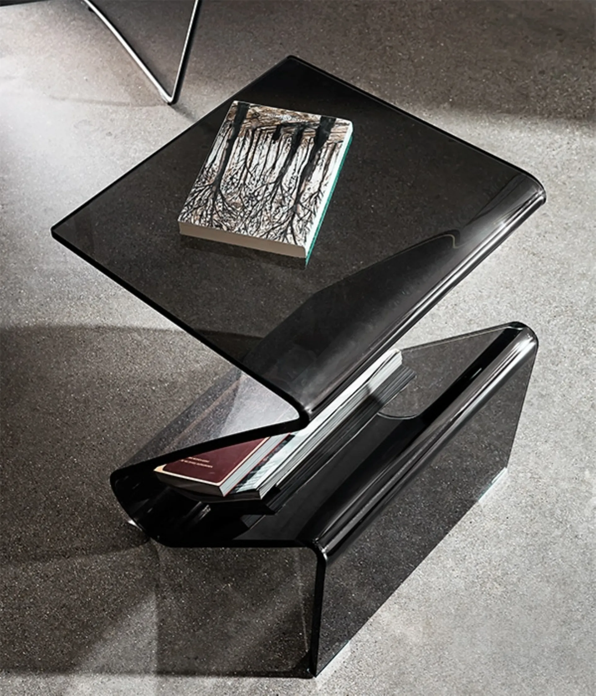 In our showroom, you can see firsthand the quality of the glass design containers from the brand, just like this one in the photo. The high aesthetic value furnishing compositions from the Sovet brand enhance the environment with color and taste, recreating unique decorating atmospheres. Accessories and containers personalize the home decor, filling the space in a useful way and making it very functional and pleasing to the eye. Very versatile and multifunctional, the glass design accessories serve different functions: they enhance the practicality and aesthetic value of the room. The Sovet Zeta glass magazine rack: it will add personality and charm to an interior furnished with furniture and accessories with design inspirations.