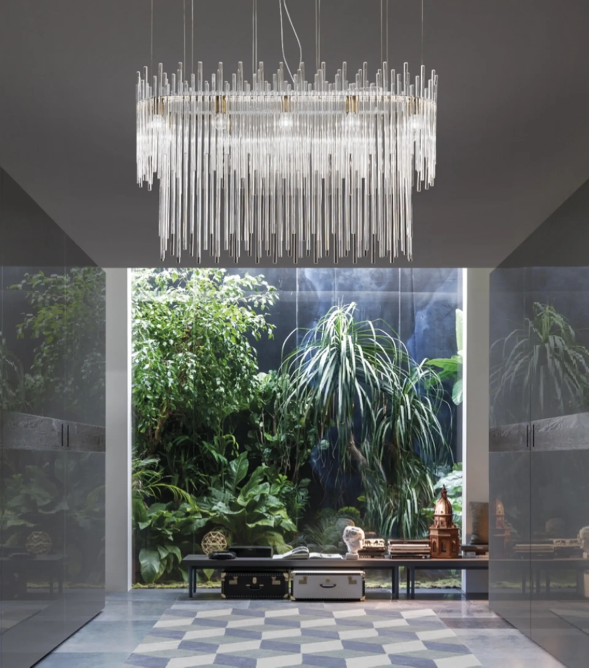 In the shop we present the most efficient lamps on the market to respond to every request: the most exclusive quality proposals await you. The lamp in the photo emits a beautiful light and with its lines it fits into rooms with different moods, always enhancing the aesthetics to the maximum. It does not constrain stylistic combinations: Diadema suspended lamp by Vistosi in glass is characterized by the quality of materials and technological content. The world of lighting is equipped with a specific alphabet but at the same time communicates with the furniture of the house, combining the qualities of practicality with aesthetic ones. Vistosi presents various modern suspension lamps for interiors able to characterize spaces with a good aesthetic result, always in first choice materials.
