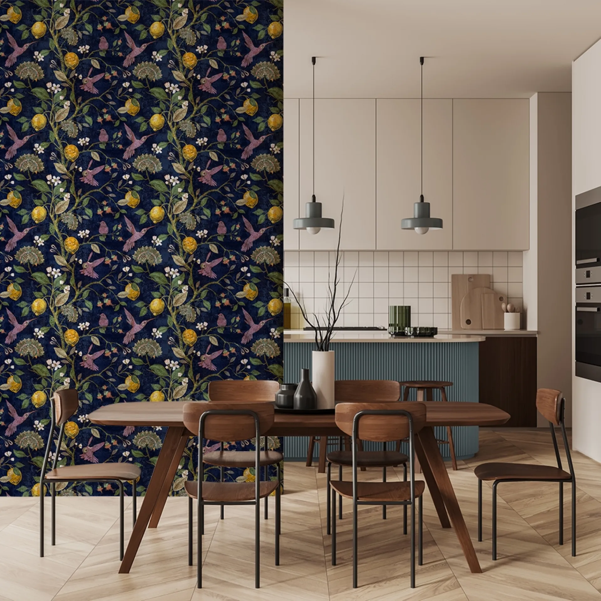 The Lemons and Birds wallpaper by Adriani and Rossi can be paired with furniture of any style, although it is particularly well suited for a modern room. Our compositions with vinyl wallpaper find a place in any type of room, as they combine the best qualities of aesthetic value and functionality. The finish of this solution makes it a piece of furniture suitable for enhancing the environments you have, even when they are already furnished. Affordable and very easy to apply, this solution can meet any type of request, thanks to a wide variety of very different aesthetic options. In the store, we will show you multiple style solutions, always with a great decorative impact: the choice will be purely individual, based only on your tastes.