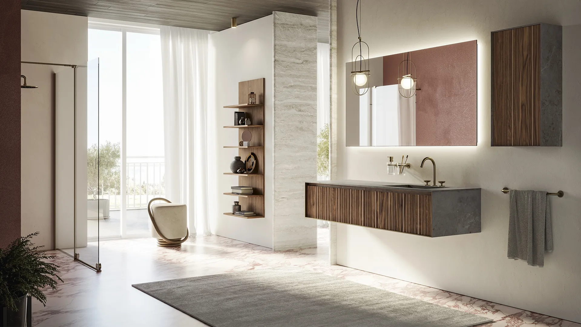 Every proposal for bathroom furniture design with suspended bathroom furniture from the brand contributes to making the destination space a place to live in. A practically infinite range of available finishes and current colors distinguish the furnishings of the renowned brand, synonymous with excellence in the industry. The wooden model we present is designed to furnish the bathroom by blending great functionality and style. Great attention to detail guarantees the quality that characterizes every line of suspended bathroom furniture from Inda available in store. The suspended bathroom furniture model Divo 01 by Inda in wood is suitable for organizing a beautiful, functional, and comfortable space. The bathroom furnishings lines from the Inda brand offer good opportunities for customization, exclusive design, plenty of ergonomics, and safety.