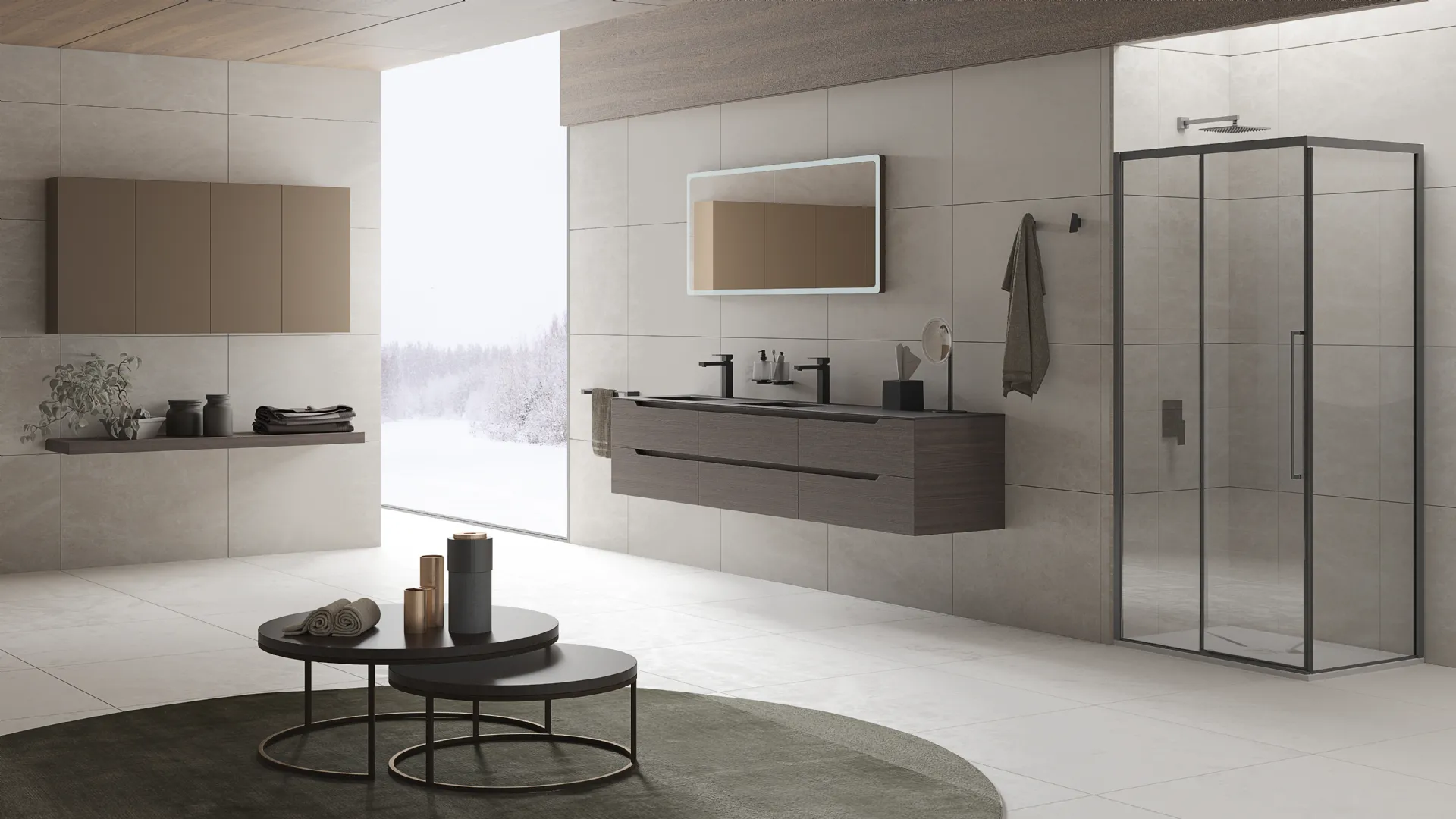 Discover our collection of modern bathroom furniture and suspended bathroom furniture in HPL, such