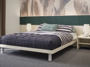 The Este bed with headboard by Cinquanta3 enhances the bedroom, ensuring you the best rest and a ca