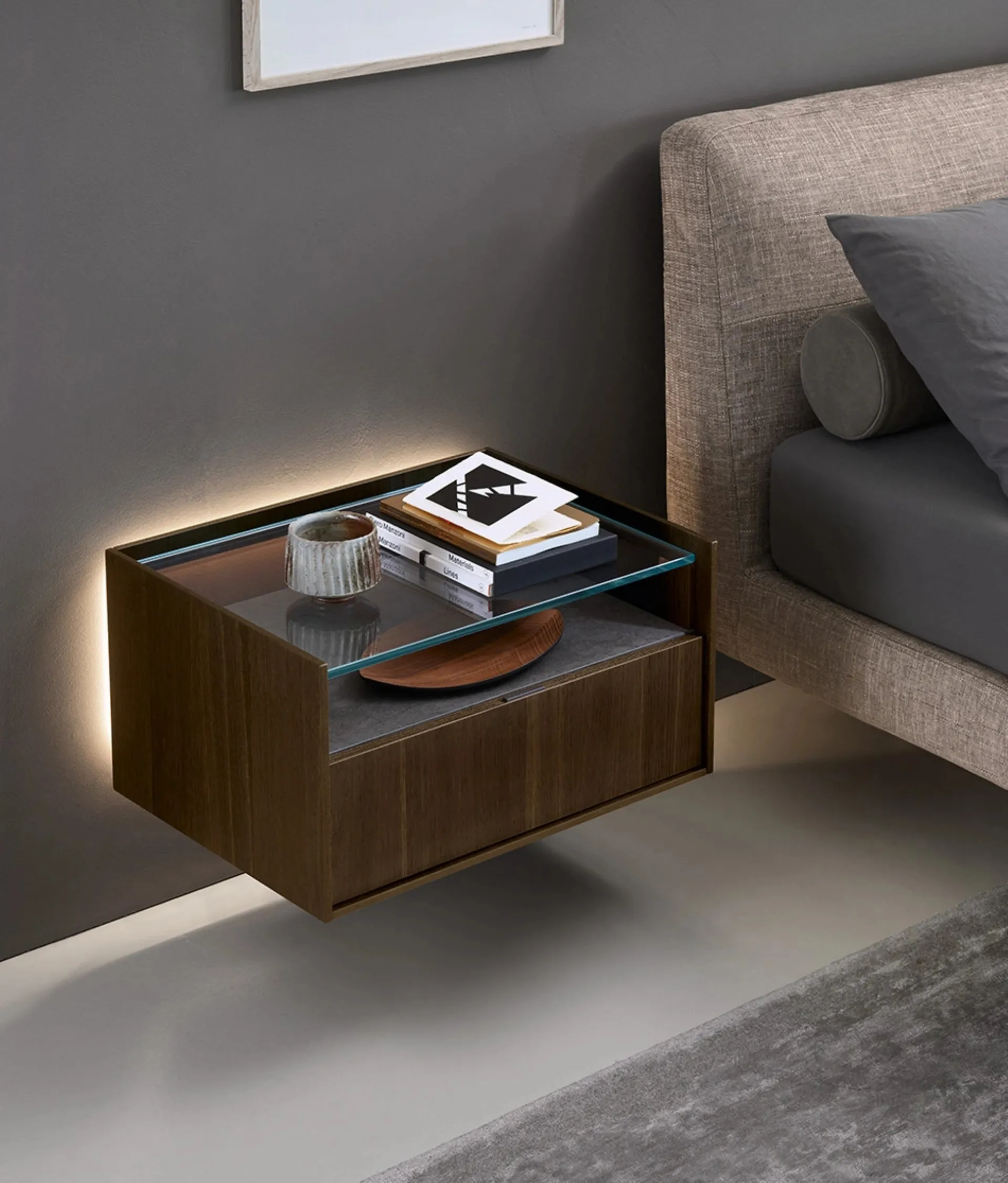 Il Comodino Cabaret Glass di Sangiacomo è disponibile con un servizio completo di progettazione, consegna e montaggio professionale. Serviamo con cura le aree di Monza, Como e i comuni limitrofi. Il Comodino Cabaret Glass di Sangiacomo si distingue come un arredo contemporaneo e multifunzionale, perfetto per l'ambiente notte, con un design che esalta linee pulite e proporzioni bilanciate. Una caratteristica distintiva è il suo perimetro rialzato, che incornicia il piano superiore come un elegante vassoio. Il top, spesso in vetro, offre una superficie ideale per esporre oggetti o come raffinata teca. Viene proposto in molteplici configurazioni, tra cui versioni con uno o due cassetti dotati di sistema di chiusura ammortizzata e maniglie integrate o a pressione. Le opzioni di finitura comprendono il rovere termotrattato, il noce canaletto, piani in ceramica con effetti marmo o pietra, e basi sospese in metallo. In alcune varianti è disponibile anche un'elegante retroilluminazione a LED. La vostra soddisfazione è la nostra priorità, con servizi di alta qualità e supporto costante per il vostro arredamento.