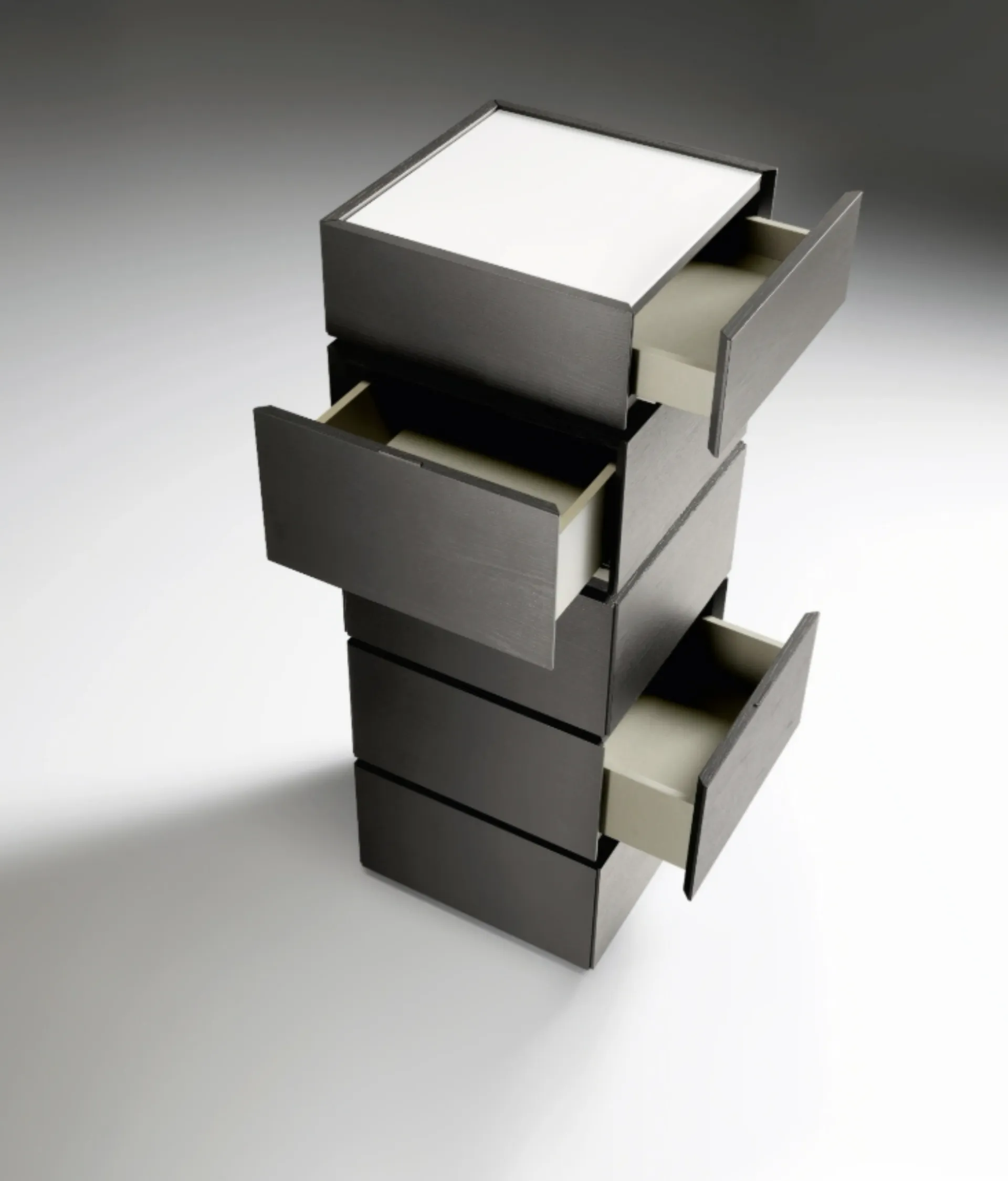 La cassettiera Cidori di Sangiacomo si distingue per i suoi contenitori caratterizzati da un effetto 'vassoio' visivo, ulteriormente valorizzabile con un top in vetro, disponibile laccato lucido o spazzolato. La variante Cidori Mono propone fianchi continui e cassetti con apertura a gola, un dettaglio che enfatizza la purezza delle linee orizzontali. Questi arredi, dal design essenziale ma di forte impatto estetico, sono perfetti per la zona notte, unendo eleganza a praticità d'uso. Le finiture comprendono laccato opaco, lucido e molteplici essenze di legno impiallacciato, offrendo versatilità estetica. Questo prodotto incarna l'eccellenza costruttiva e la flessibilità progettuale, elementi distintivi dei marchi leader nel settore.