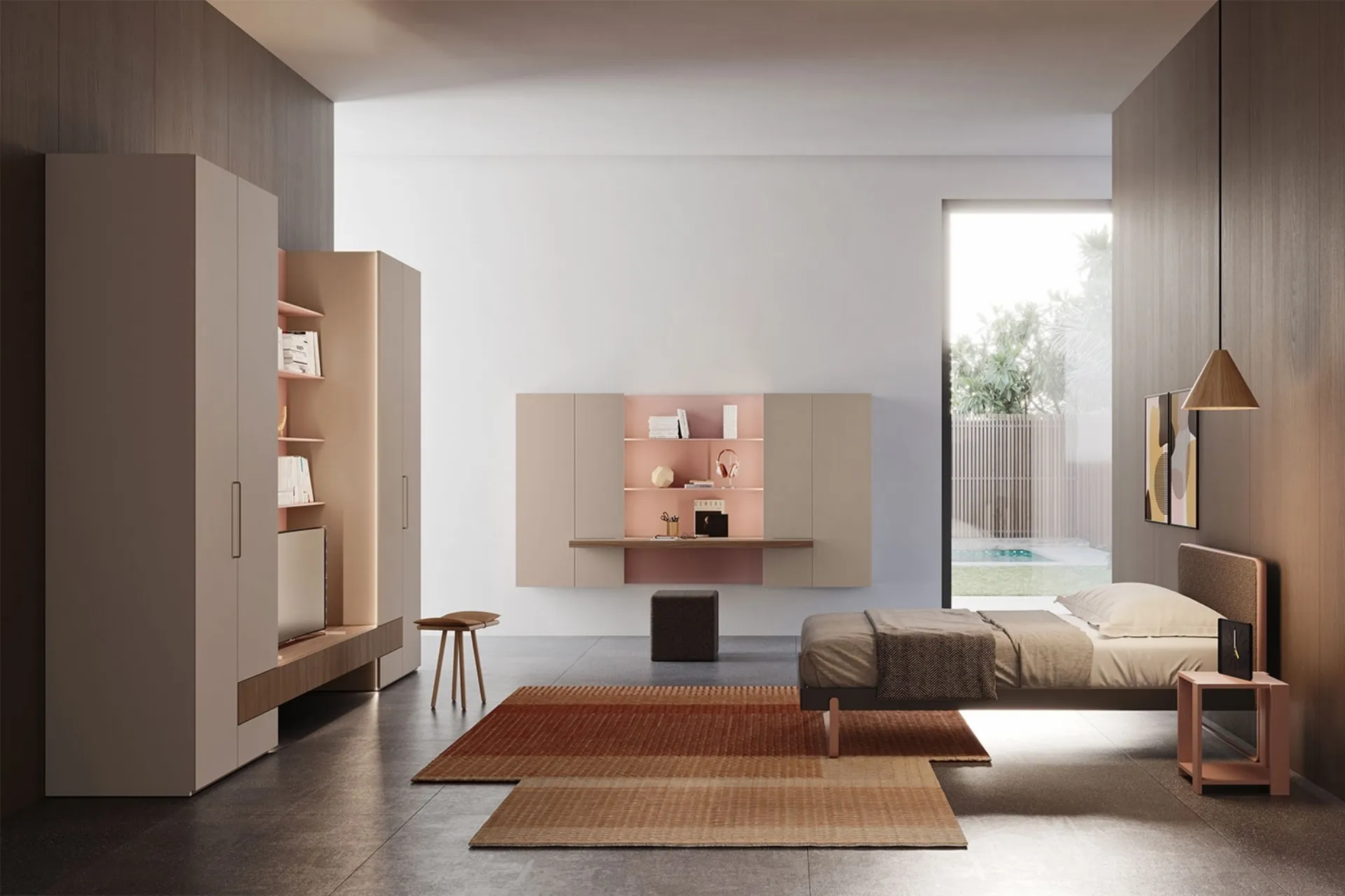 With the Start T01 modular bedroom by Clever you will make your children's room a truly comfortable and safe interior, which will accompany them as they grow up. To perfectly organize the bedrooms, Clever presents design and multifunctional solutions: there are many activities that your children carry out there. This solution with melamine finish, among the Clever modular ones for kids, satisfies the needs of adults and the tastes of young people. Visiting us means seeing live all the most beautiful melamine modular solutions for kids that we offer in our store. The well-known brand produces various modern solutions, so the bedroom will be a room where your children will be happy to grow up and rest.