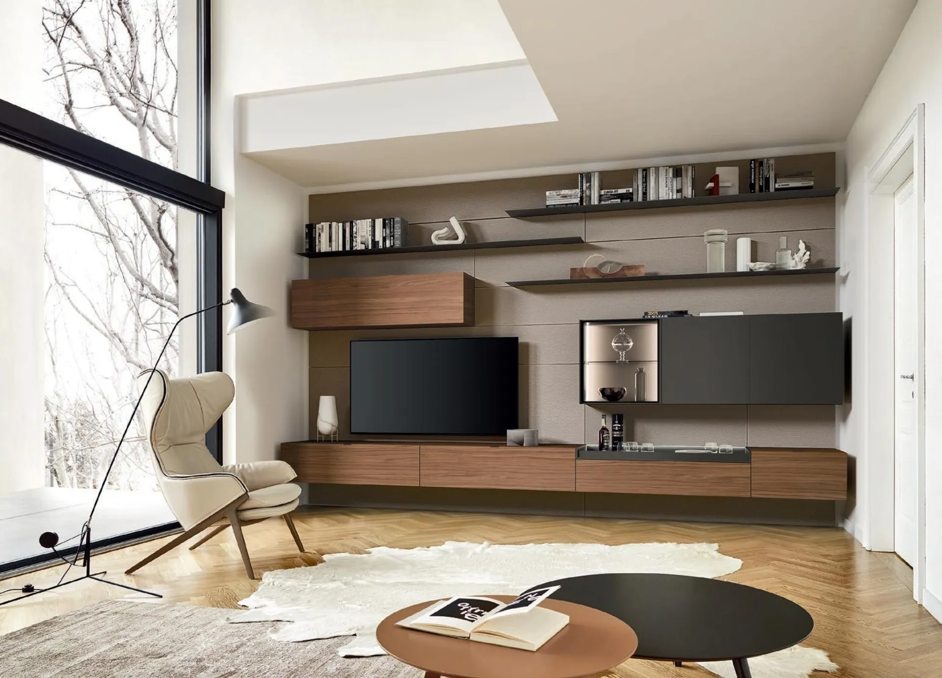 Be fascinated by a rich catalog of furniture for the living area and you will find the wall unit that suits you. The Lampo 186 Wall Unit by Sangiacomo in the picture is one of the most exclusive furnishing solutions on the market: maximum modularity and various design opportunities make it beautiful and functional. Wooden living room furniture with modern lines like the model in the picture are truly versatile and capable of furnishing the living area while making the most of every corner. Since the living room must be a practical and beautiful space, some beautiful and practical furniture such as Wall Units are essential.