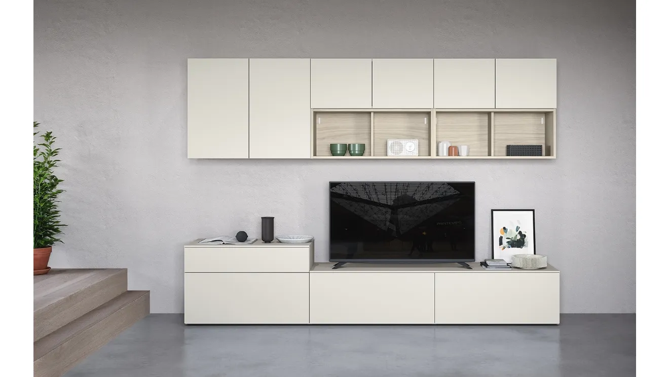 We are retailers of melamine home furnishings from the best brands: contact us and get information! By studying the most current and particular housing needs, we select only the most beautiful and interesting furnishing solutions on the market, customizable according to personal requests. The Wall Unit 04C by Cinquanta3 becomes the protagonist in rooms of all kinds thanks to its modular components and the possibility of combining textures, materials, tones, shapes, and much more. Modern wall units offer the possibility of creating different atmospheres in the living room, freeing up space and enhancing every corner. Discover our collection of furnishings for the living room from the brand Cinquanta3 and furnish your home with a unique style and the storage capacity you need.