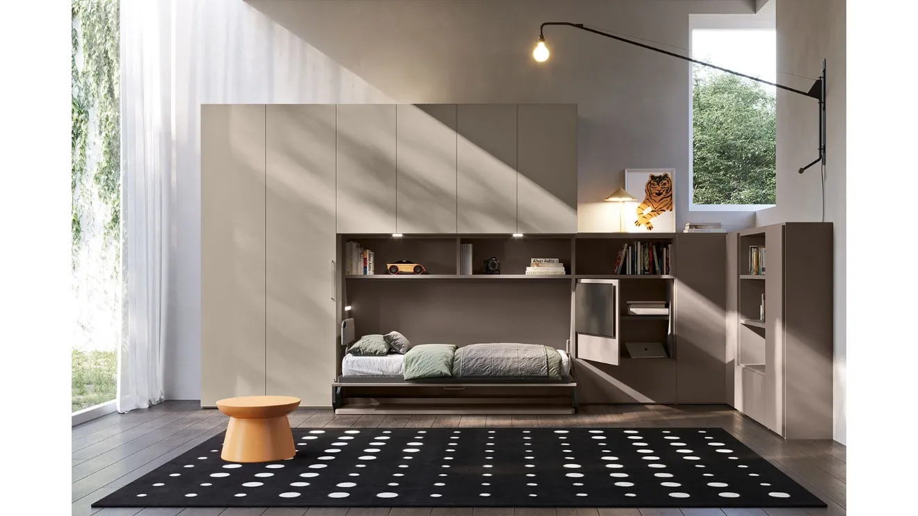 Clever's custom-made space-saving models available in our store complete the functional qualities of your bedroom by combining ergonomics and safety. Coming to the store means seeing live the most original melamine compositions of the well-known brand, including those ideal for small venues. Among the foldaway beds in melamine on the market, the model shown in the photo will give you total relaxation every night and complete well-being. In the bedroom, the foldaway beds are the center of the furniture: with the linen and pillows, they become an island of comfort that welcomes you at the end of the day. The bedroom is the home environment that most reflects the taste of those who frequent it, an interior par excellence dedicated to rest, relaxation and privacy. With the space-saving foldaway beds of the Clever brand, including this practical model, you will make the bedroom an interior furnished with class.