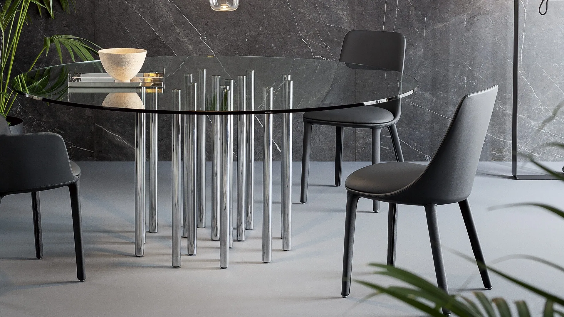 Design chairs, both in wood and upholstered, are complex furnishings, defined by an almost infinite range of shades, lines and patterns. A leather chair like the one shown here furnishes a living room or a kitchen area of great design, completing the spaces by fully enhancing them. Contact us and find out more about the Bonaldo Itala chair model shown in the photo. In addition to responding to an essential function, these pieces of furniture are able to enhance even an anonymous place without accessories. In our store we present exclusive furniture and accessories, among which you will certainly find the solution that's right for you. Among the best brands available in our Home Furnishings shop you will find the most beautiful fixed dining chairs on the market.