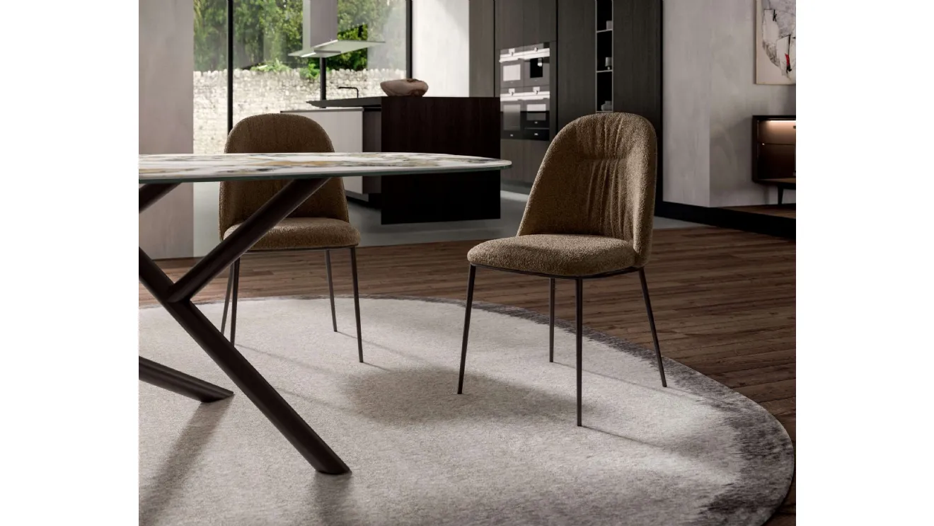 A wide range of fixed dining chairs is waiting for you in our store: contact us for information and quotes and optimize your spaces with the excellence that only Ozzio can guarantee for furniture and accessories. Ozzio's Juliette Chair: this model will complete spaces of all kinds, especially modern atmospheres. If you desire a fabric chair to complete the atmosphere of your home, discover more about the model in the photograph and find a matching table. In the living room or kitchen, chairs are essential furnishings: they underline the mood of the room and perform an indispensable function. The living room and kitchen are not truly pleasant and comfortable if furnished with the wrong chairs, that's why they need to be matched with the other pieces of furniture and the size of the room.