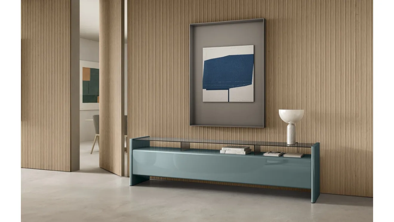 For furniture enthusiasts, this modern living room cabinet model guarantees the quality of the renowned brand. Contact us for information and quotes. If you are looking for a solid, pleasant, and elegant sideboard to optimize your living room, let yourself be fascinated by the most original modern sideboards from the best home furnishing manufacturers. The Cosmo sideboard by Olivieri, visible here in glossy lacquer, is the perfect purchase as it adds an elegant touch to the living room. Enhance your living room according to your housing needs: discover in-store a wide range of living room furniture, also in glossy lacquer like the model shown in the photo.