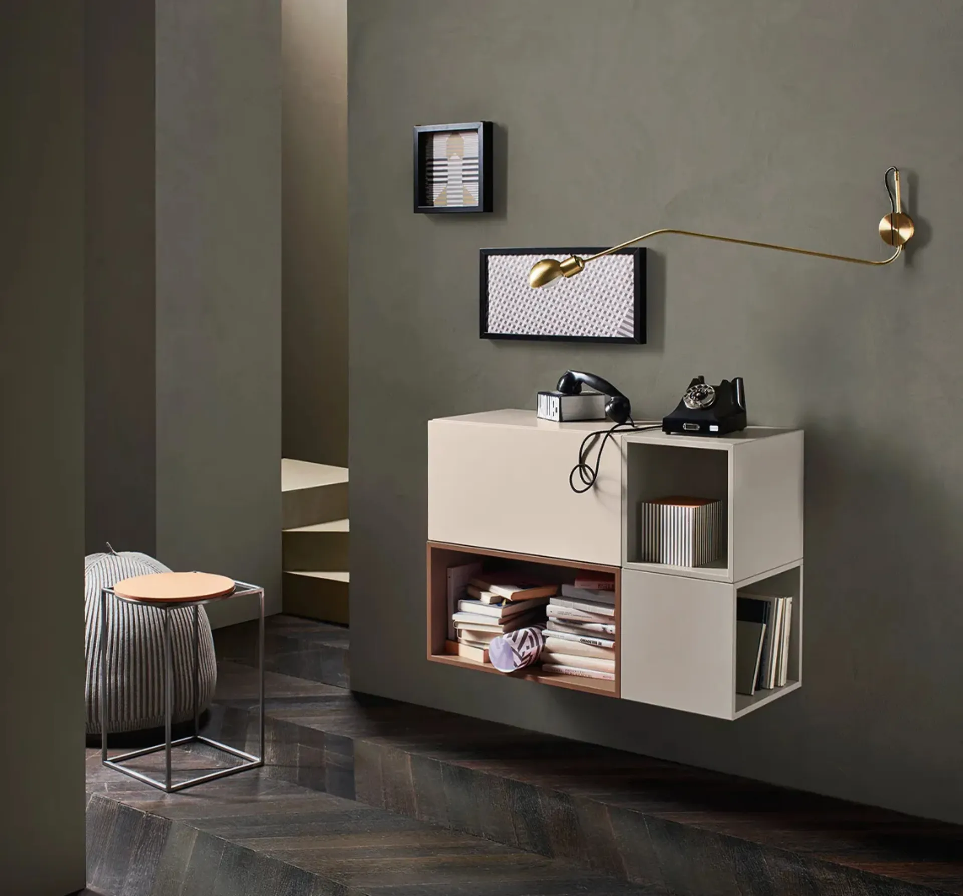 | Materiale: | Vetro lucido Juta, Laccato opaco Brown, Laccato opaco Bianco 10, Laccato opaco Ferro, Laccato opaco Ardesia, Rovere Carbone, Metallo Brown (per la base) |