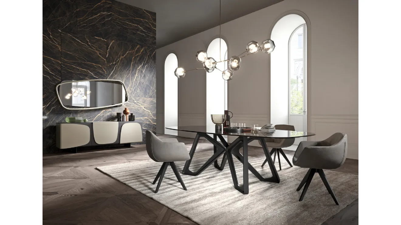 Fill out the form and contact us to discover the best brands of home furnishings, Ozzio branded coffee tables and chairs. Ozzio's Papillon glass table: discover a rich catalog of furniture and dining accessories to complete your spaces, with various customization options. Tables are essential furniture in every home: complete your furnishing concept and bring to life the house you've always wanted. Tables are furnishing components that can enrich the living room, kitchen area, or other areas of the house, thanks to high-quality materials and imaginative color combinations. Fixed glass models, like the one shown in the photo, adapt to various living environments, being truly versatile and resistant.
