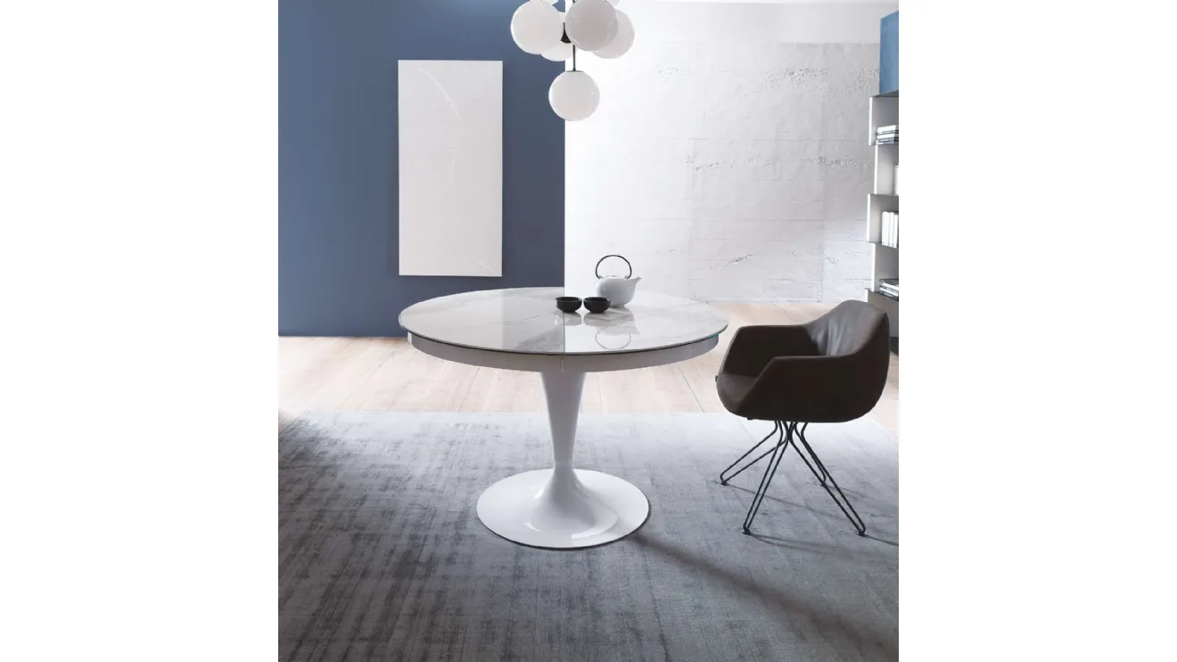Tables are furnishing accessories with which it is possible to enhance the living room, the kitchen area or even other rooms in the house, thanks to durable materials and imaginative color combinations. Tables are indispensable pieces of furniture in every home: complete your furnishing project and bring life to the house you have always desired. Extendable glass models, like the one visible in the photo, adapt to a wide range of living spaces, being truly versatile and sturdy. Eclipse extendable round table by Ozzio: discover a rich range of dining furniture and accessories to complete your premises, relying on various possibilities for design. Fill out the form and contact us to discover the Home Furnishing of the best Ozzio branded manufacturers, coffee tables, and chairs.