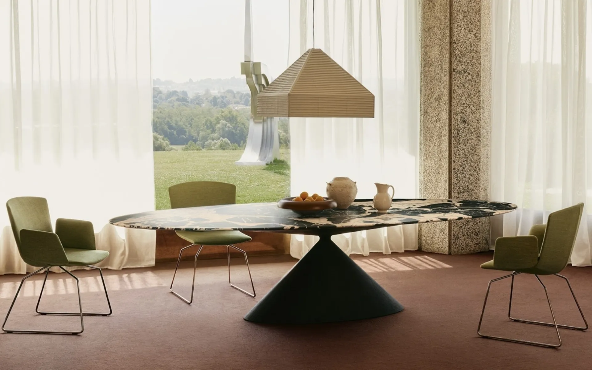 If you want a high-quality dining table, contact us and receive information and quotes on the model shown in the photo. A model like the one in the image, paired with the right chairs, will enhance the style of the rooms in the house dedicated to socializing. Maxy Clay marble table by Desalto: made of precious materials, it is characterized by the bold shapes of the top and an elegant and refined base. Ideal for creating unique pairings with design chairs and accessories, the fixed tables from the brand are among the most beautiful solutions on the market, perfect for the living room and kitchen area.