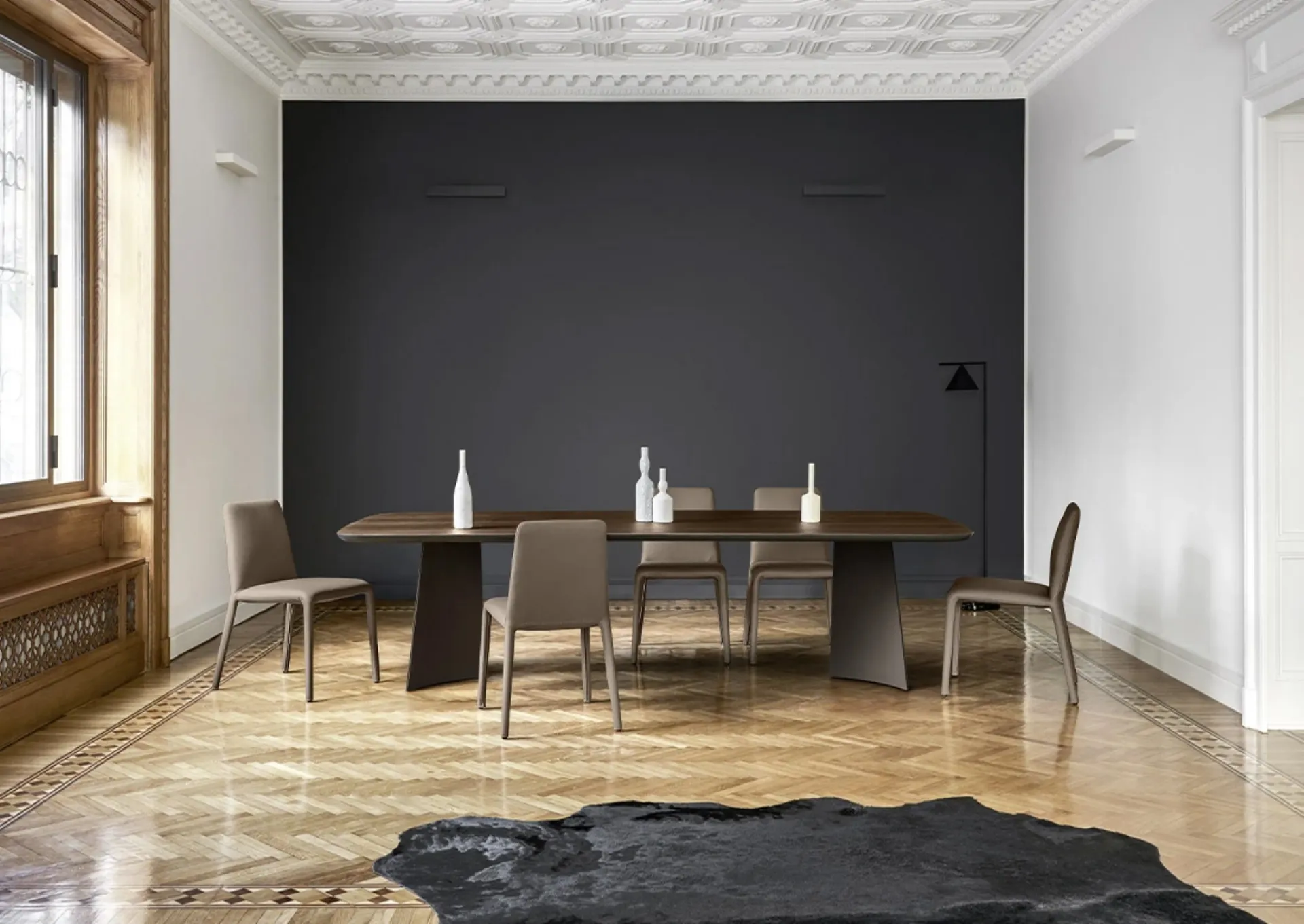 Il Tavolo Poliedro di Sangiacomo è il simbolo dell'eccellenza che portiamo direttamente a casa tua, con servizi di progettazione, consegna e montaggio attivi nelle zone di Cantù, Como, Gallarate. Caratterizzato da una base di design scultoreo in acciaio S235JR, realizzato con taglio laser, curvatura e assemblaggio di precisione in una originale conformazione a petali (tre per i tavoli rettangolari e cinque per il modello rotondo). È disponibile sia fisso che allungabile. Il piano può essere realizzato in legno impiallacciato, con uno spessore di 30 mm e un bordo accuratamente arrotondato, o in ceramica con bordo smussato di 12 mm per un tocco di eleganza. Le finiture disponibili includono il Rovere Termotrattato, che si distingue. La base è offerta in molteplici finiture sia epossidiche che metalliche, come Brown, Piombo, Palladio, Bronzo, Ottone e Rame. Offre un'ampia gamma di dimensioni, che comprendono sia varianti rettangolari che rotonde. Tutti i nostri prodotti sono coperti da un'ampia garanzia e un'assistenza post-vendita dedicata, per la tua tranquillità e per un investimento duraturo.