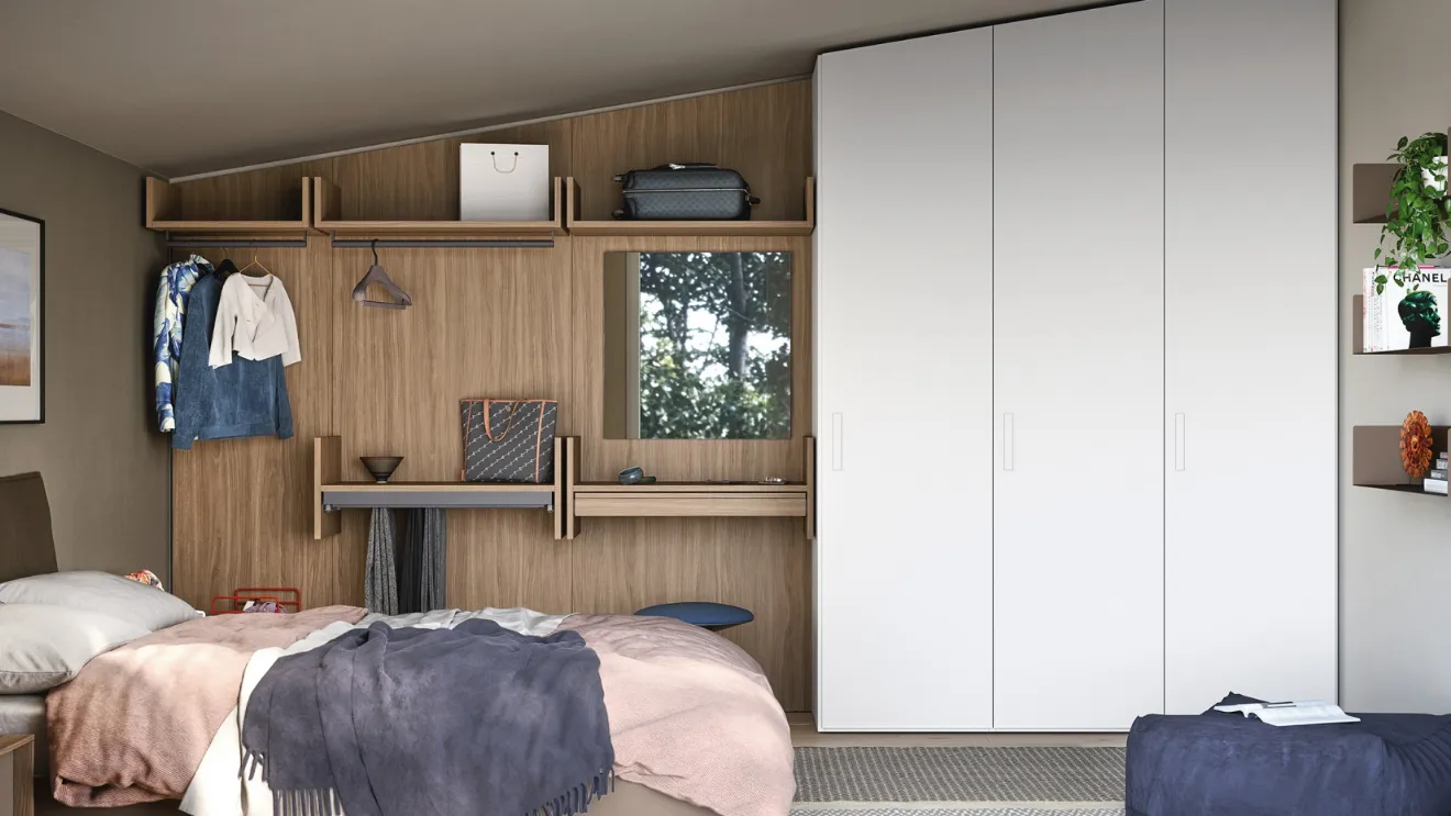 Wardrobe with hinged doors for lofts 10B by Cinquanta3: fill out the form, contact us and bring to life the relaxation room as you had imagined it. Contact us for information and quotes and you can complete the bedroom you have always desired thanks to a diverse range of modern storage furniture like this melamine wardrobe in the photograph. The bedroom is dedicated to rest, so it must be well-furnished and complete with furniture and accessories that create a consistently soothing atmosphere. Wardrobes and walk-in closets with hinged doors should furnish the sleeping area, ensuring perfect space optimization and exclusive stylistic research. To perfect the furnishing project, choose our proposals for Home Furnishings from the best manufacturers, with beds, wardrobes and dressers differentiated by class, size and material.