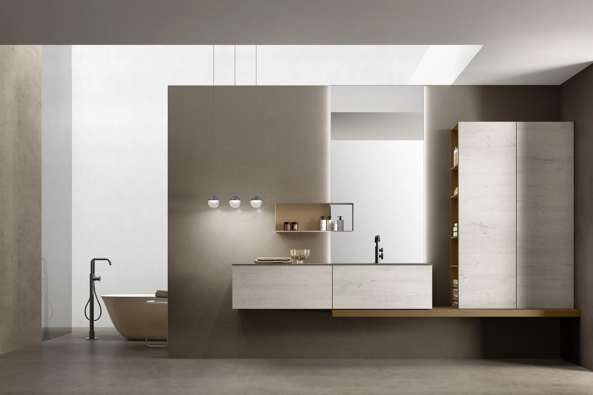 Discover our collection of modern bathroom furniture and suspended melamine bathroom furniture, such as the Pollock 90 model