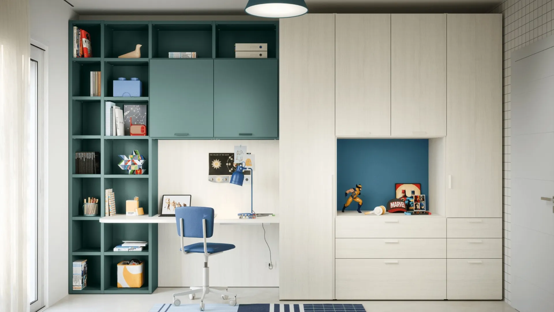Our children spend hours of the day in their bedrooms: make them suitable for studying, playing, and resting every day. Our children's bedrooms are the space where they will grow up having fun and dreaming, so it is essential that the space is comfortable. We present various modern bunk bed children's bedrooms in our store, ideal for accompanying them during their growth. With the Nidi Kids space 12 bedroom in melamine, you will ensure a perfect combination of ergonomics and safety, ideal for your children's room. In our showroom, we guide you from choosing furniture for the room to designing the place where your children will grow up, having fun and dreaming.