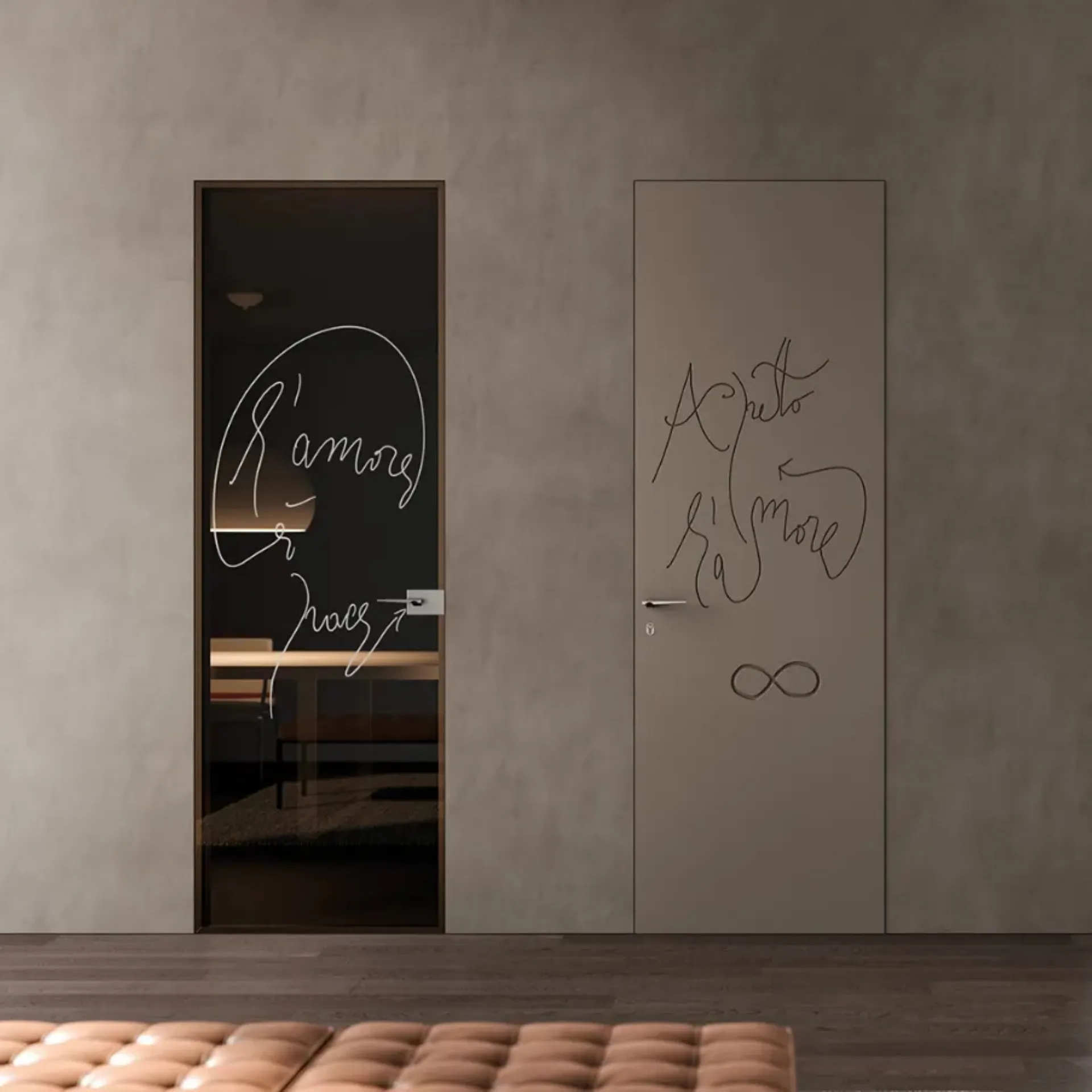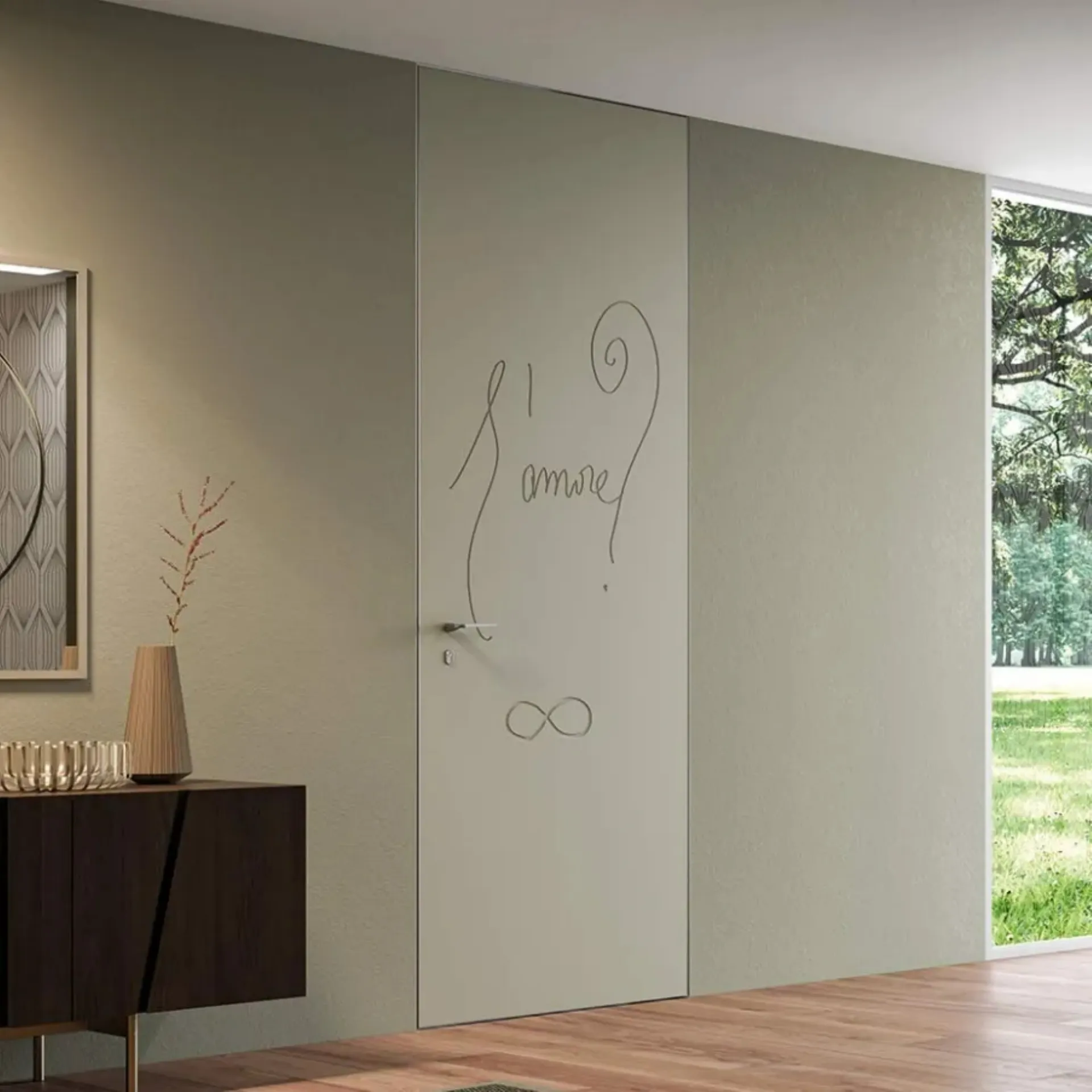 The Bertolotto Filomuro lacquered interior door combines aesthetics and technology in a fashionable solution ideal for you, durable over the years and with a refined aesthetic. With a truly tireless search for new collections, designs, and techniques, the brand distinguishes its exclusive compositions of excellent quality. Discover in the store the most exclusive design interior doors flush-to-wall in lacquered finish, among which you will also find the model of great charm shown in the photo. Nowadays, the door is not limited to being an architectural component, but becomes a furnishing complement for the home: the best solutions are waiting for you in the store.