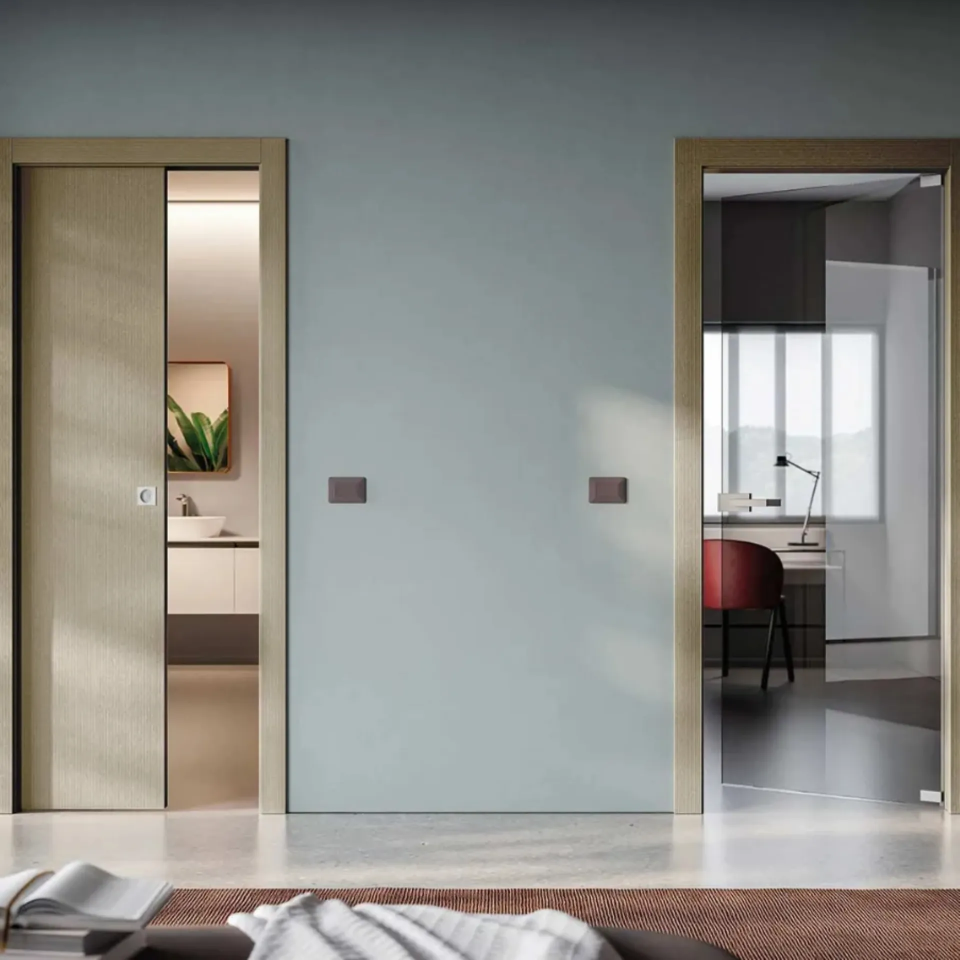 Bertolotto's internal sliding doors are ideal for truly sophisticated interior design projects, capable of optimizing spaces with logic. The brand's rich range of finishes and designer colors makes them perfect for different rooms. With the proposals available in stores, it will be easy to logically and rationally separate the rooms of the house, combining functionality and aesthetic content. Bertolotto's Textile Sliding Interior Door in Italian laminate ensures the quality we all desire for our furnishings, thanks to its unique design and functionality.