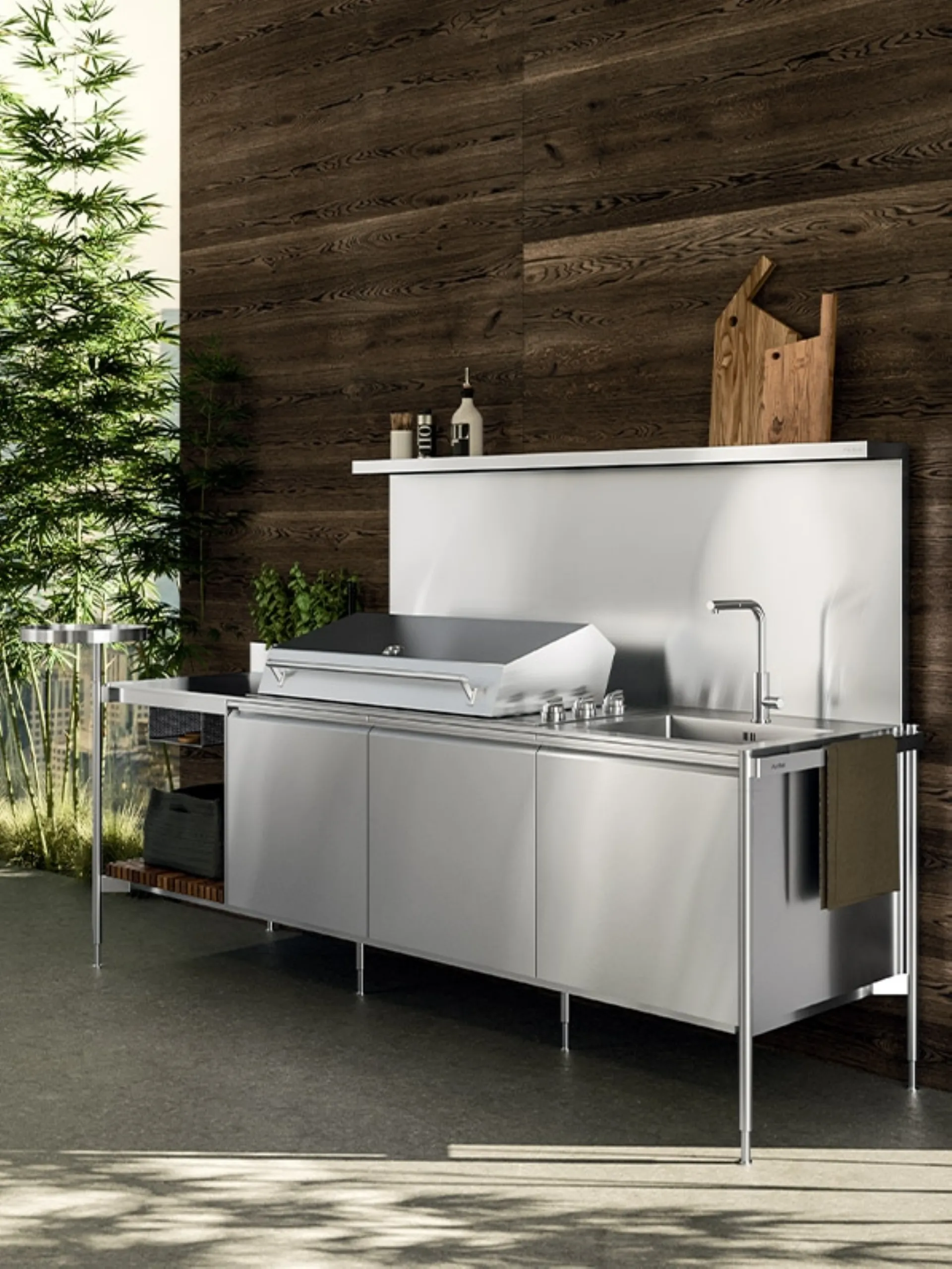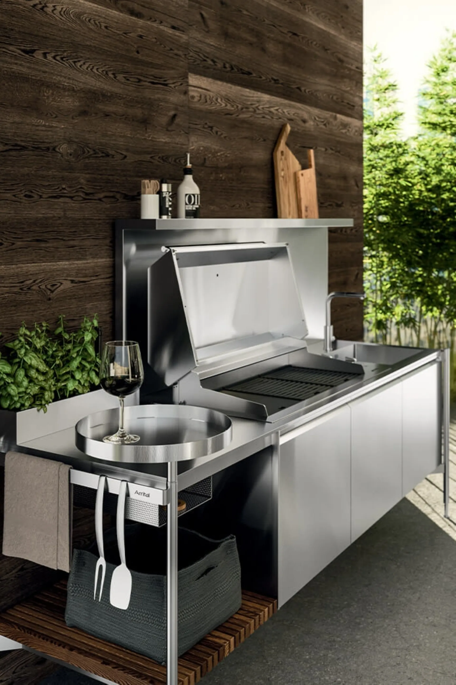 Architectural consultation is one of the basic factors to consider before buying space-saving design kitchens like the one visible here. Arrital is the specialized brand in building trendy furniture, where every customer can indulge in finishes, shapes, and color palettes. If you want to furnish your home with high-value furniture and accessories, our suggestion is to purchase the Arrital Solaria Linear Monobloc Outdoor Design Kitchen.