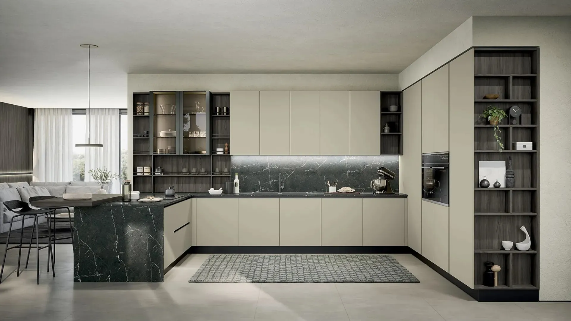 This proposal with a charming peninsula, signed by the well-known and recognized brand, is one of the most exclusive models and you can request it in different materials. Choosing this Modern Kitchen with Colibrì 02 peninsula by Forma Cucine in melamine means designing spaces enriching their aesthetics, without sacrificing style. The purchase of the new kitchen will depend on the shape of the room, its style, and your needs for space, functionality, and storage capacity. In our showroom, you will find a rich catalog of charming Forma Cucine Modern Kitchens, in multiple colors and designer finishes, and in various shapes.