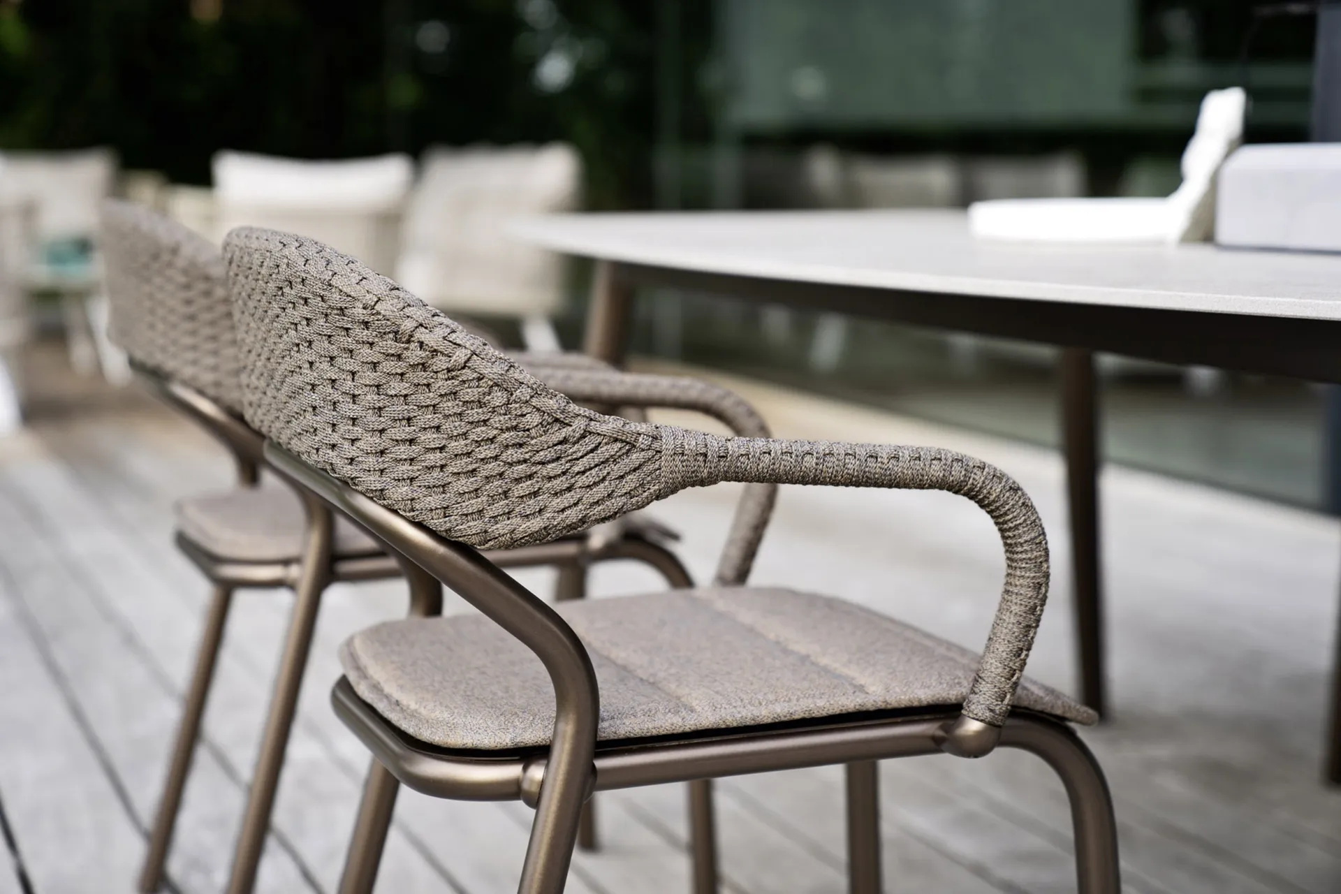 Discover our line of garden armchairs in Varaschin fabric: the Noss Poltroncina model shown in the